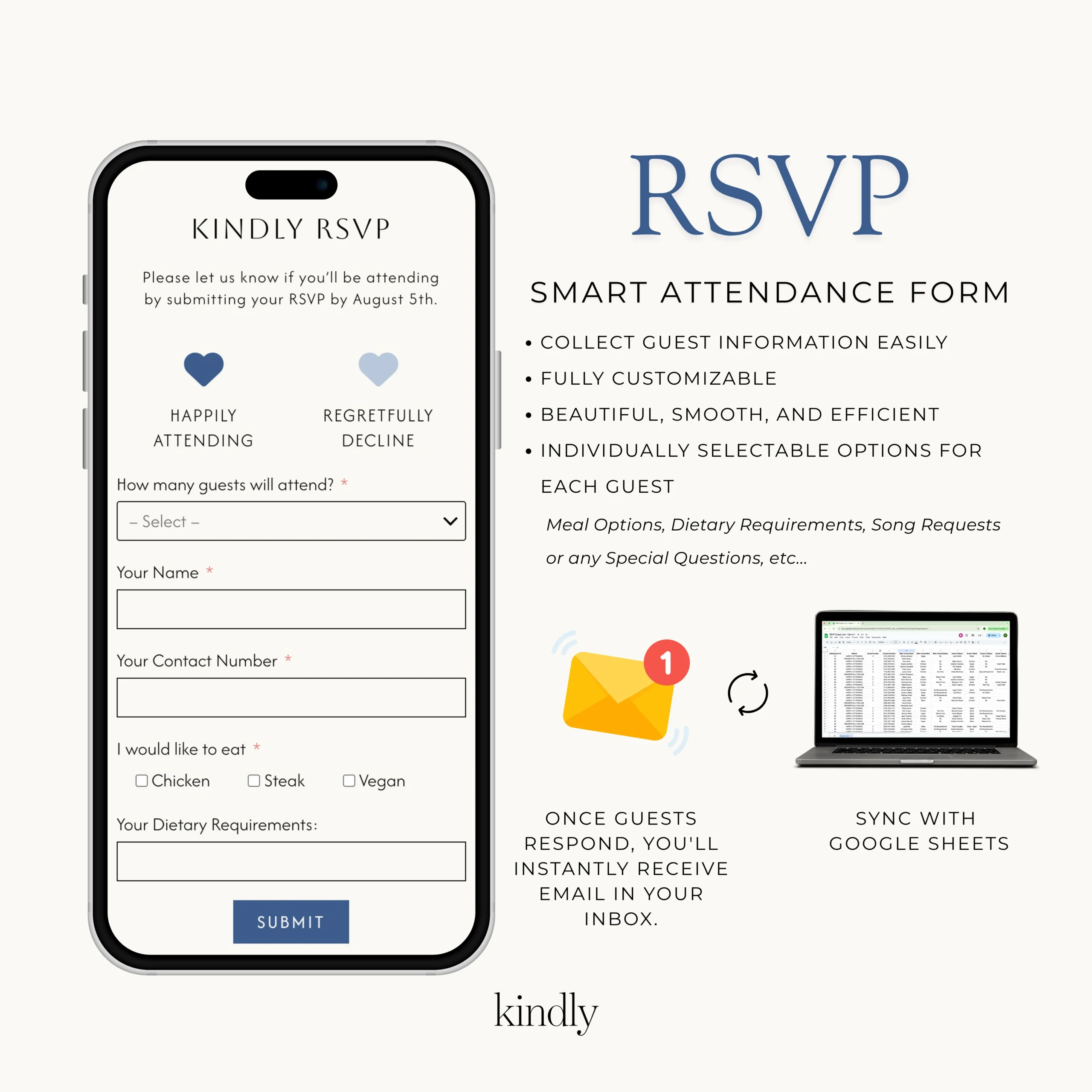 – Your guests RSVP directly on your site (no Google Form!)
