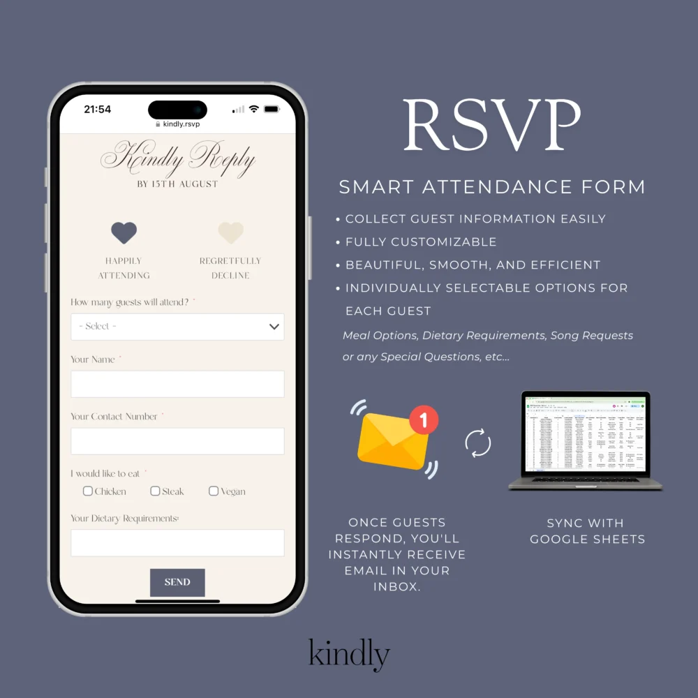 – Your guests RSVP directly on your site (no Google Form!)