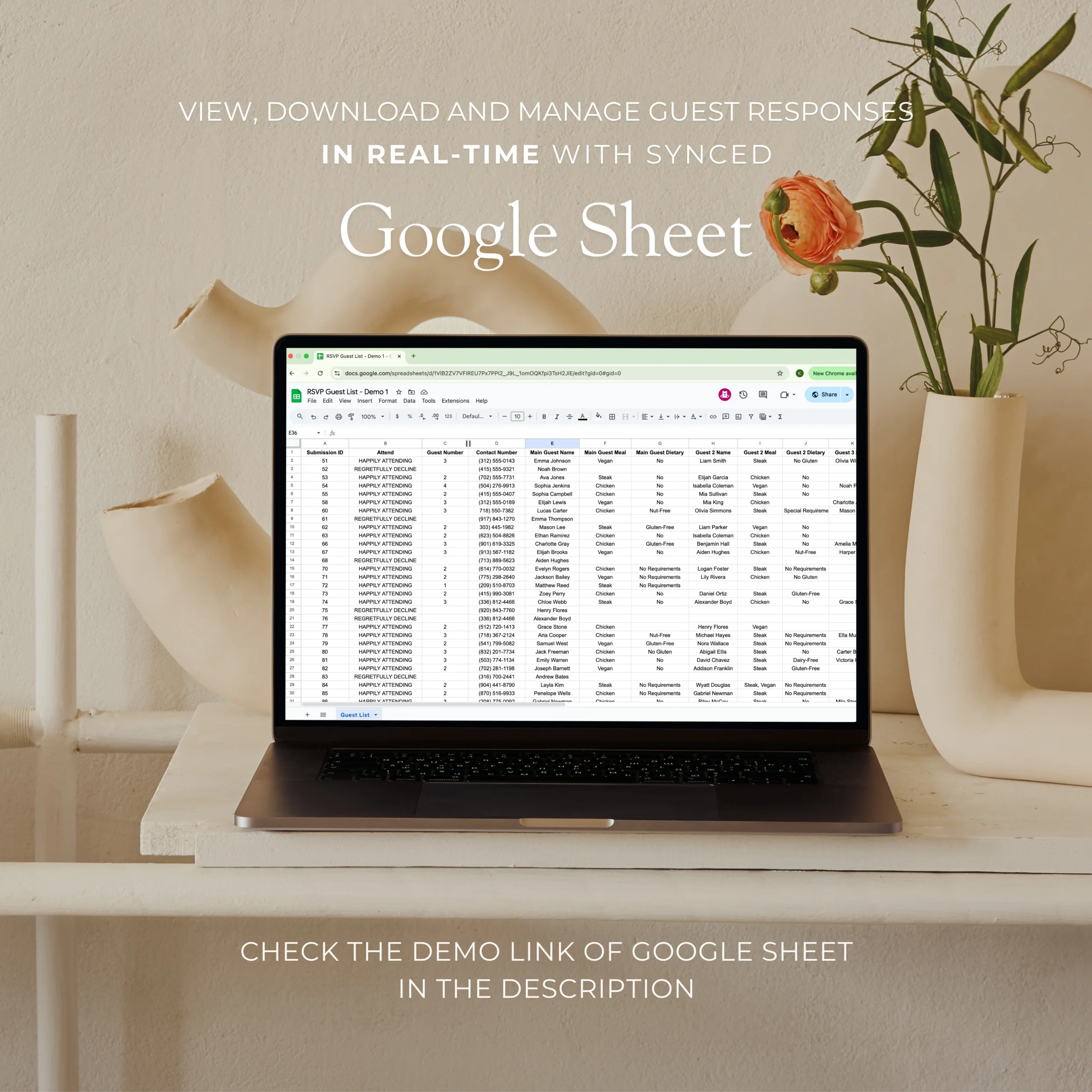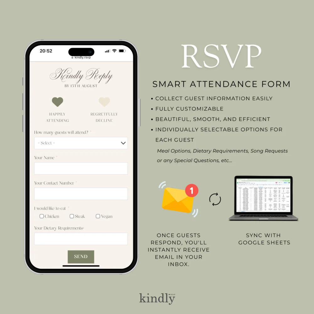 – Your guests RSVP directly on your site (no Google Form!)