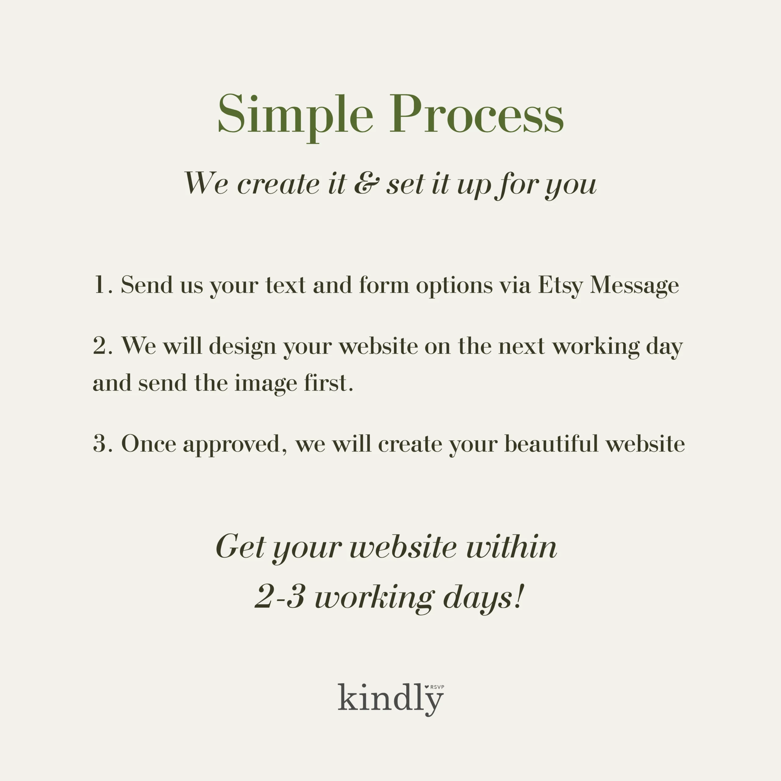 – Send us your text and any design or RSVP requests via Etsy messenger.