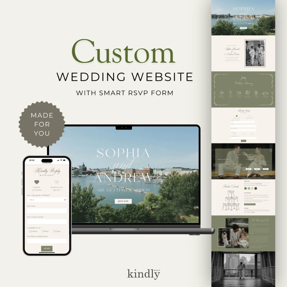 Create a beautifully styled, made-for-you wedding website with an integrated RSVP form — no editing required!
